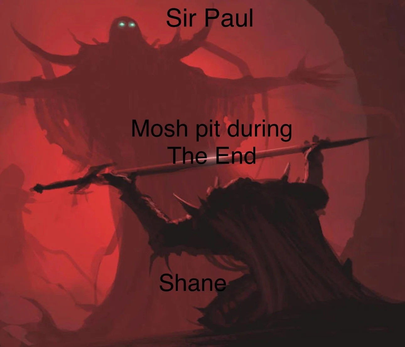 Paul and his band’s encore was the Abbey Road medley of “Golden Slumbers” into “Carry That Weight” into “The End.” “The End,” which I’ve always loved for pushing the upper limits of the amount of intensity possible from the Beatles, inspired me to start a friendly mosh pit, which became pretty sizable and earned some smirks from Paul Rudd and Jon Hamm in the balcony above. Ridiculous.